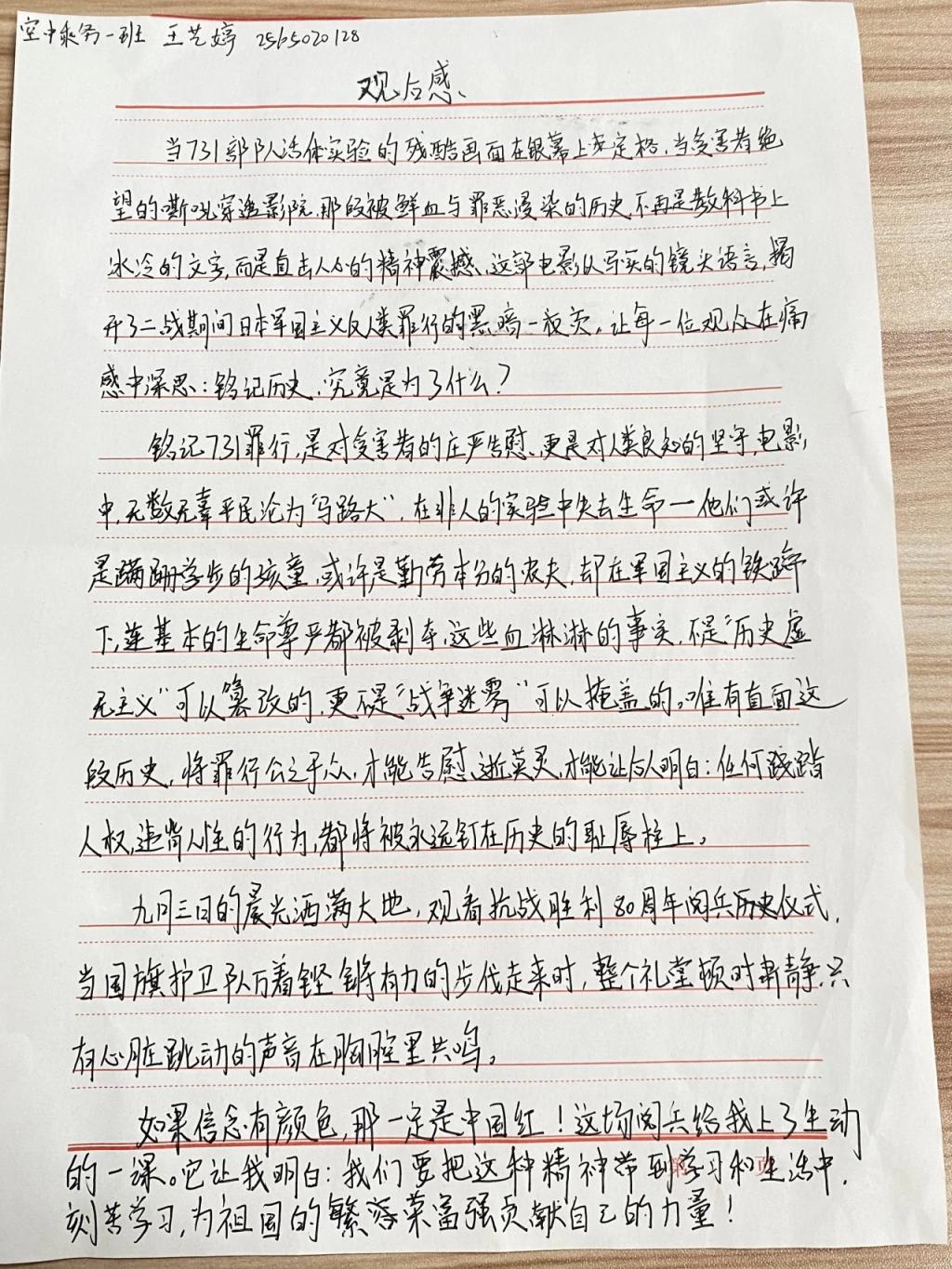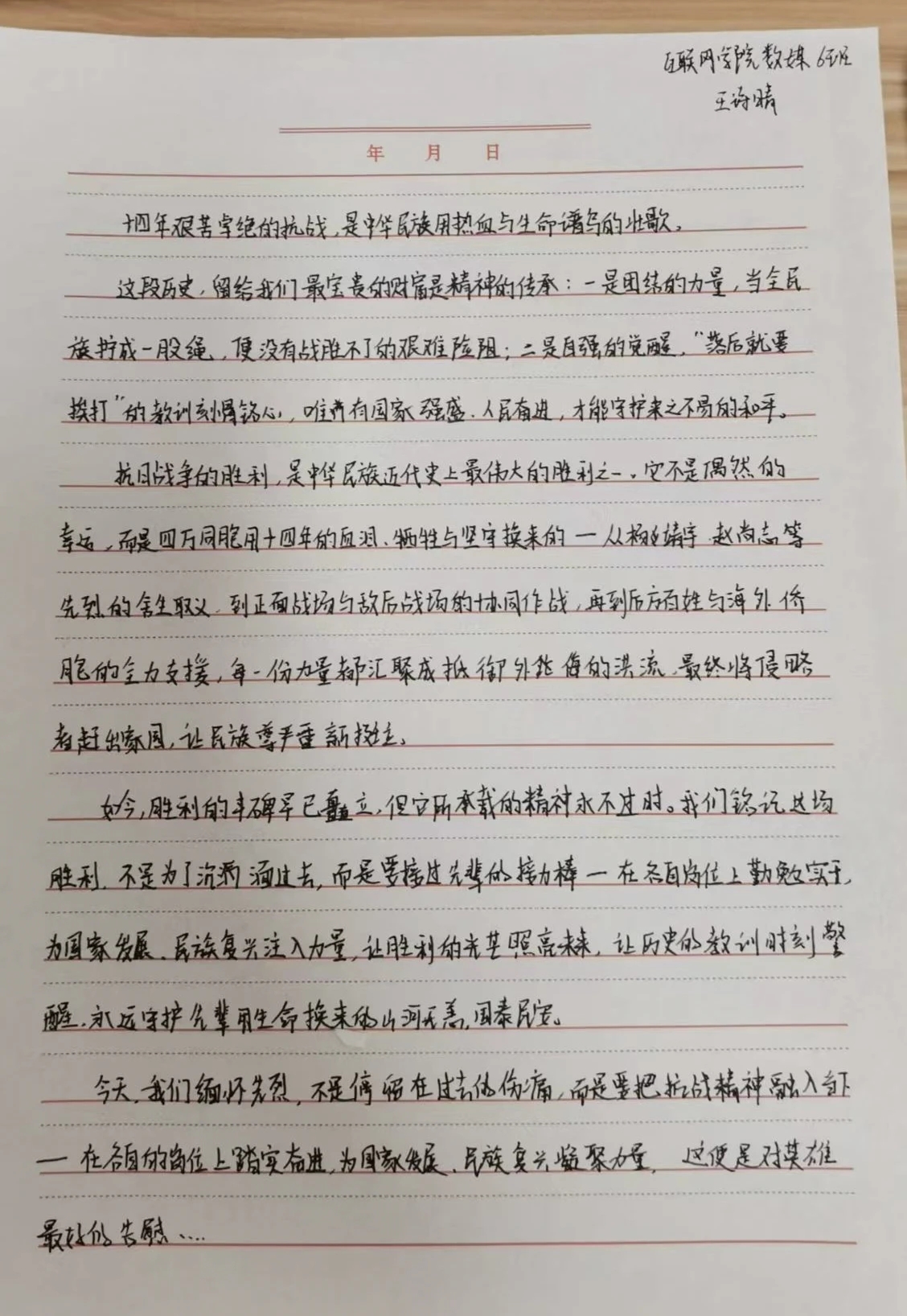 在聆听系列主题授课之余,广大学子深受触动,纷纷提笔,记录下自己的学习体会与思想感悟。一段段文字,是青年与历史的对话,是爱国情怀的自然流淌,更是对未来的思考与承诺。